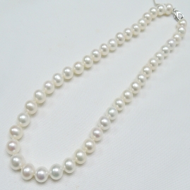 10-11MM White Freshwater Pearl Necklace (Silver Clasp)