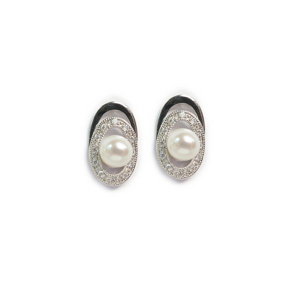 925 Sterling Silver, Pearl & CZ Earrings (TSE0759)