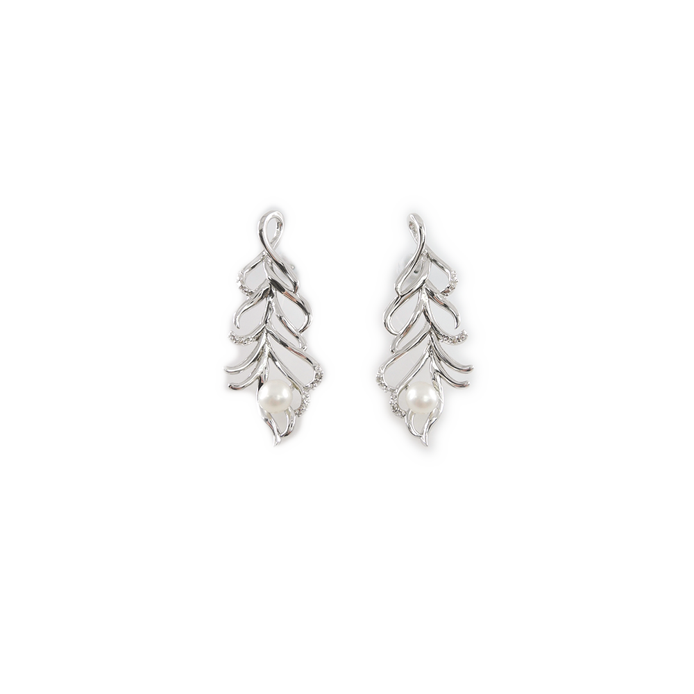 925 Sterling Silver, Pearl & Diamond Earrings (TSE2340)