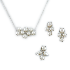 925 Sterling Silver, Jewelry Set with Pearl & Diamond (TS2350)